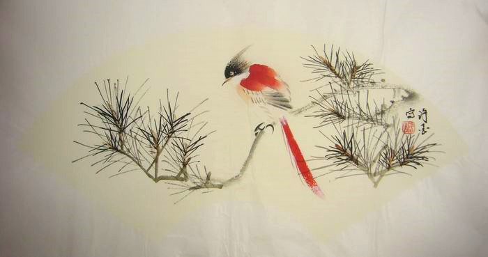 第一字画网的扇形花鸟,是幅客厅装饰花鸟画。这幅花鸟图画面生动温馨,适合挂家里的餐厅或卧室等场合。如果放在画廊出售,美琦老师此幅花鸟作品的标价大约在800元左右。